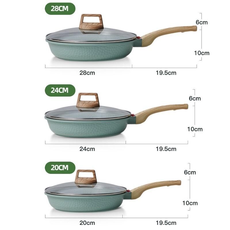 8. Size: 28cm/24cm/20cm, handle length 19.5, height 10cm, height with lid 16cm