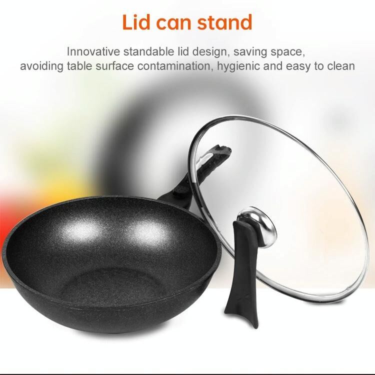 2. Περιέχει: γουόκ + ξύλινη σπάτουλα + αντιαναχαιτιστικό καπάκι
