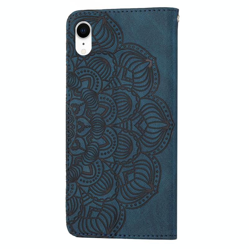 Θήκη τηλεφώνου από δέρμα με ανάγλυφο μαντάλα για iPhone XR (Μπλε)