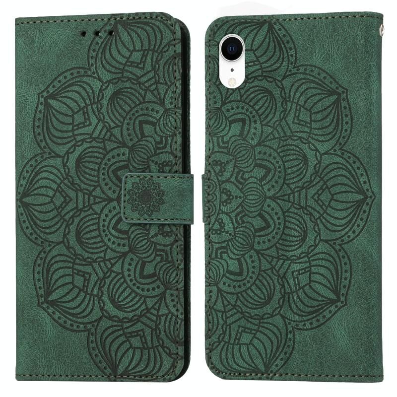 Θήκη τηλεφώνου από δέρμα με ανάγλυφο μαντάλα για iPhone XR (πράσινο)