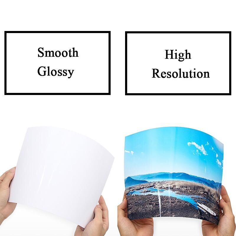 1. Το φωτογραφικό χαρτί υψηλής γυαλάδας μπορεί να εκτυπώσει φωτογραφίες ζωής, φωτογραφίες ταυτότητας, καλλιτεχνικές φωτογραφίες, φωτογραφίες τοπίου και άλλες φωτογραφίες. 2. Η μπροστινή πλευρά του χαρτιού είναι επικαλυμμένη με επίστρωση εκτύπωσης - μια γυαλιστερή επιφάνεια εκτύπωσης, και το πίσω μέρος του χαρτιού φέρει το λογότυπο της μάρκας (το εκτυπωμένο λογότυπο στο πίσω μέρος αποστέλλεται τυχαία), το οποίο είναι εύκολο να διακρίνει την μπροστινή και την πίσω πλευρά, και εύκολο στην εκτύπωση και τη χρήση. 3. Επιλέγεται χαρτοπολτός υψηλής ποιότητας ως βάση χαρτιού, έτσι ώστε το χαρτί να έχει καλή αντοχή και να παρέχει μια σταθερή βάση εξόδου για το αποτέλεσμα εκτύπωσης. 4. Το μπροστινό μέρος του χαρτιού είναι επικαλυμμένο με μια ειδική επίστρωση εκτύπωσης - μικροπορώδη δομή, εύκολη στην απορρόφηση και στερέωση του μελανιού, έτσι ώστε το εκτυπωμένο μοτίβο να στεγνώνει γρήγορα, το χρώμα να είναι σταθερό και η εικόνα να είναι καθαρή. 5. Προδιαγραφές: 5 ίντσες 3R