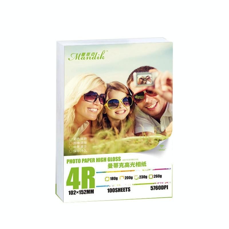 Mandik 4R 6-Inch One Side Glossy Photo Paper For Inkjet Printer Paper Imaging Supplies, Spec: 180gsm 200 Sheets