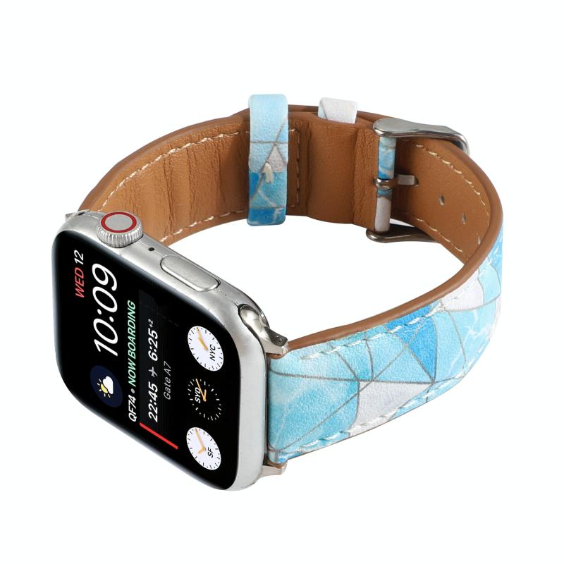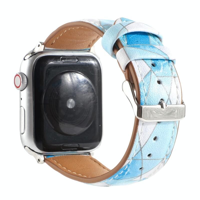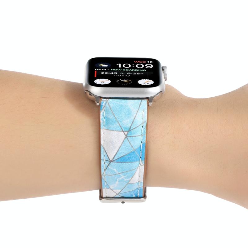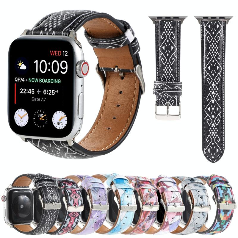 Λουράκι ρολογιού από δέρμα με σχέδιο μαρμάρου και εθνοτικό στυλ για Apple Watch Ultra 49mm & Watch Ultra 2 49mm / Series 9 & 8 & 7 45mm / SE 3 & SE 2 & 6 & SE & 5 & 4 44mm / 3 & 2 & 1 42mm (Μαύρο Ρόμβος)