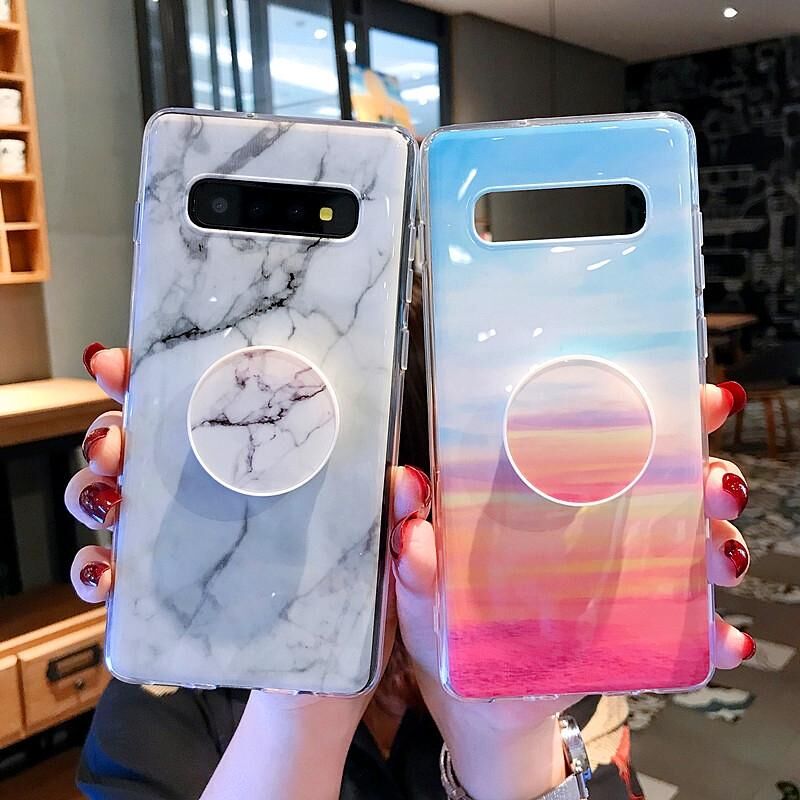 Marble Strip TPU Protection Back Cover Case για Galaxy S10+, με θήκη (Γκρι)