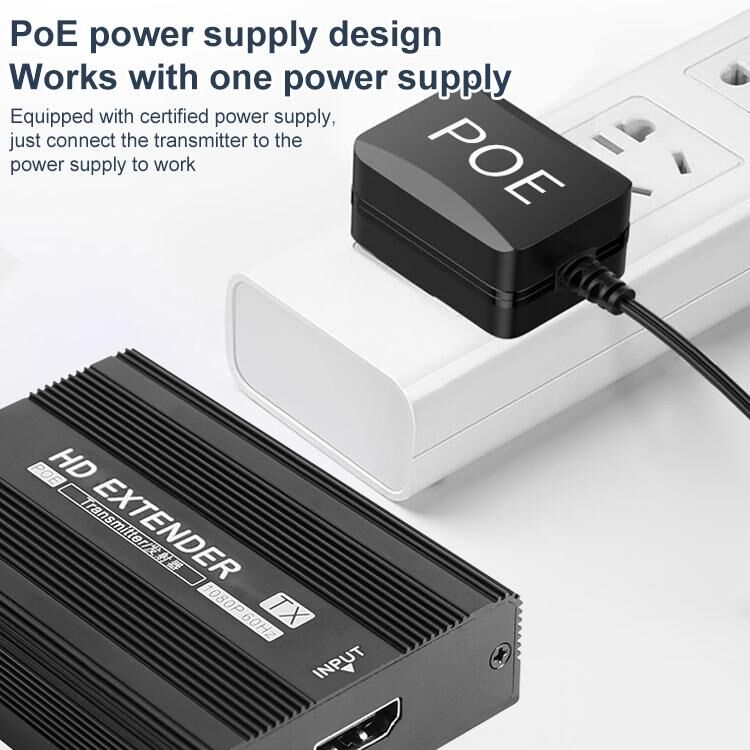 3. POE unilateral power supply, we use a special technology to allow the cable connected to the transmitter and receiver to transmit power. Only one power adapter can support the entire kit operation, reducing a lot of complicated operations. It is simpler and more convenient.