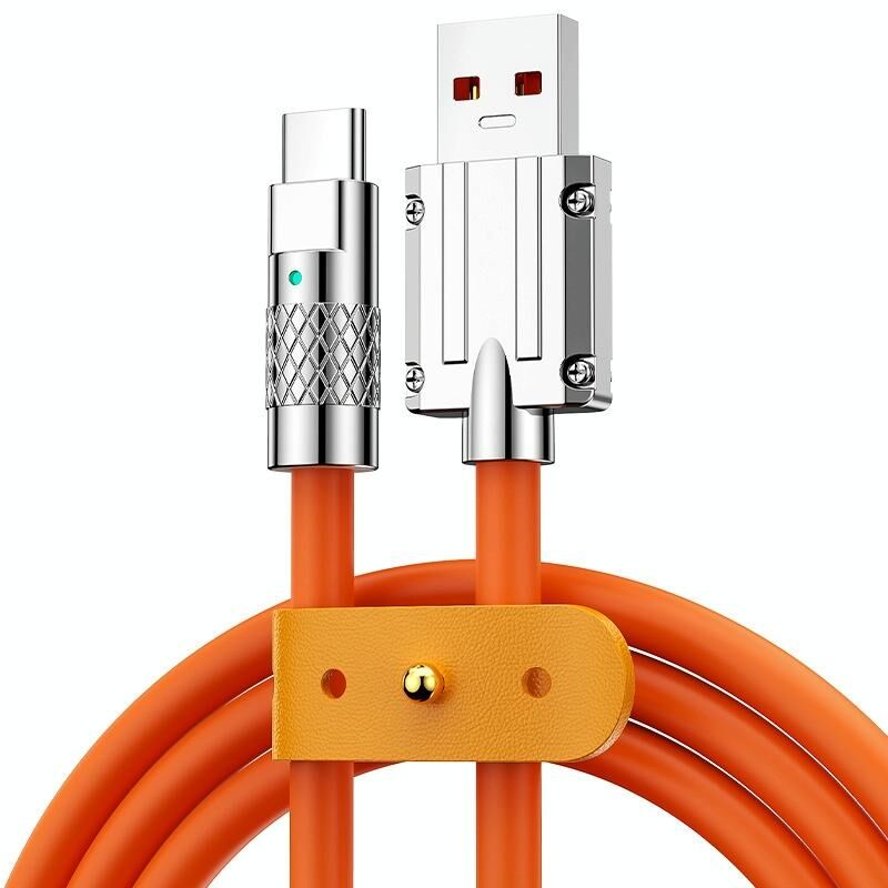 Mech Series 6A 120W USB to USB-C / Type-C Metal Plug Silicone Fast Charging Data Cable, Length: 1.8m(Orange)