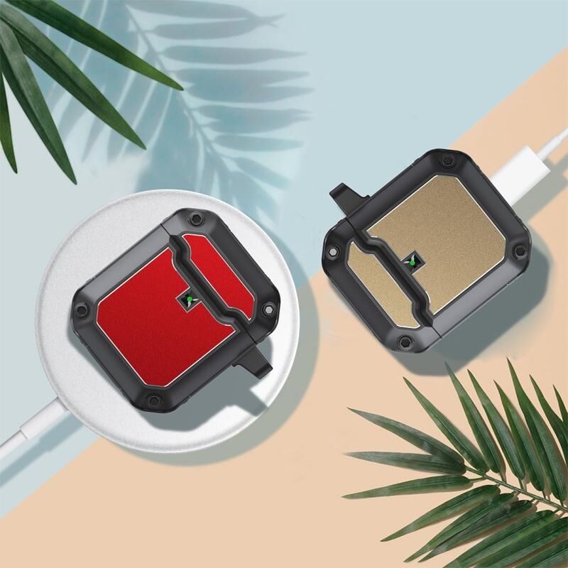 Θήκη Προστασίας Ακουστικών TPU Mecha Hardware με Γάντζο για AirPods 2 / 1 (Μαύρο)
