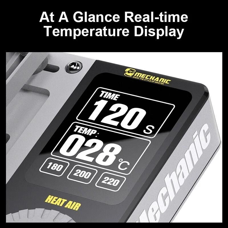 5. The heating platform features a 2.5-inch HD display that clearly shows the real-time temperature, countdown, and three temperature memory storage to keep you on top of the heating status, easily respond to various work demands