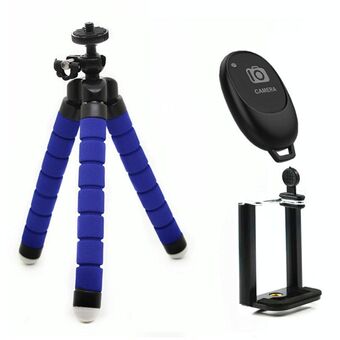 Mini Octopus Flexible Foam Tripod Holder with Phone Clamp & Remote Control (Blue)