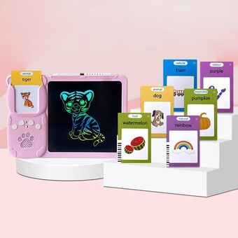 8.5 inch Children Early Education Drawing Board Card English Audiobooks, Style:Pink / 112 Cards