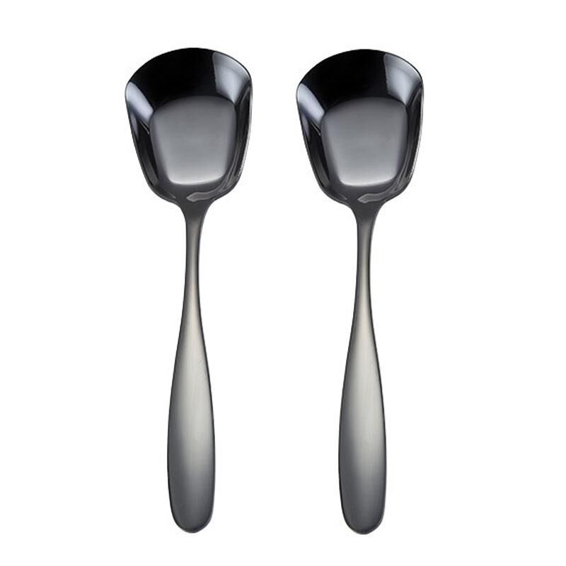 Μεσαίο κουτάλι από ανοξείδωτο χάλυβα 304 Γυαλιστερό παχύρρευστο επίπεδη κεφαλή επίπεδη βάση κουτάλι σερβιρίσματος, χρώμα: Μαύρο