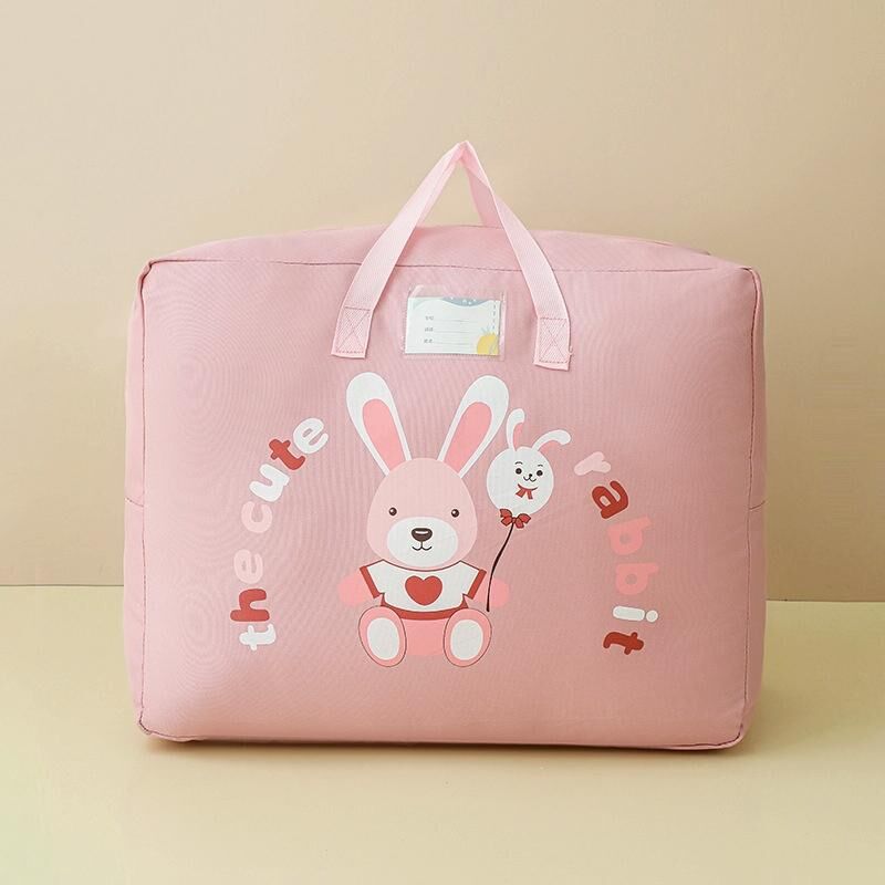Medium 40x50x26cm Children Quilt Storage Bag Student Clothes Quilt Portable Luggage Woven Bag(Pink Rabbit)