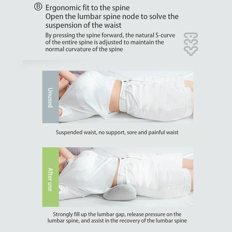 1. Οσφυϊκό μαξιλάρι υποστήριξης μέσης από αφρό μνήμης σε σχήμα ημισελήνου, 3D καμπύλη επιφάνεια ταιριάζει στη μέση, ισχυρή έλξη πριν πάτε για ύπνο, αποκαθιστά την κανονική καμπυλότητα της οσφυϊκής μοίρας της σπονδυλικής στήλης
