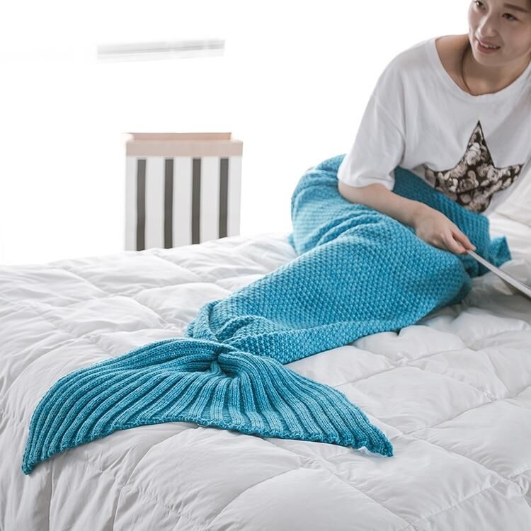 Mermaid Tail Blanket For Adult Super Soft Sleeping Knitted Blankets, Size:90 X50cm(Blue)