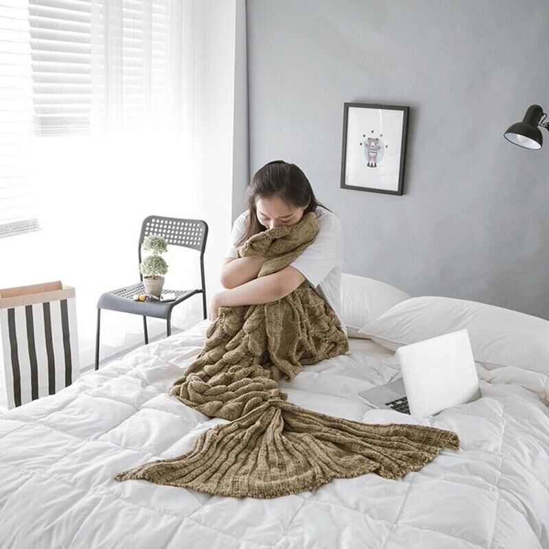 4. Η πλεκτή κουβέρτα γοργόνας έχει έντονα χρώματα και η μοναδική μέθοδος πλέξης δημιουργεί ένα ρεαλιστικό σχήμα λέπιας ψαριού, απαλή και άνετη, και όμορφη στην εμφάνιση