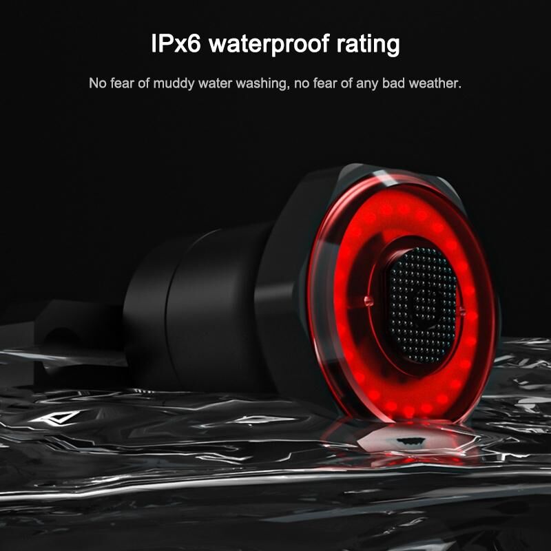MEROCA MX2 Smart Sensor Brake Tail Light Mountain Bike Light USB Charging Road Bike Night Riding Tail Light, Color:Seat Tube Installation Black