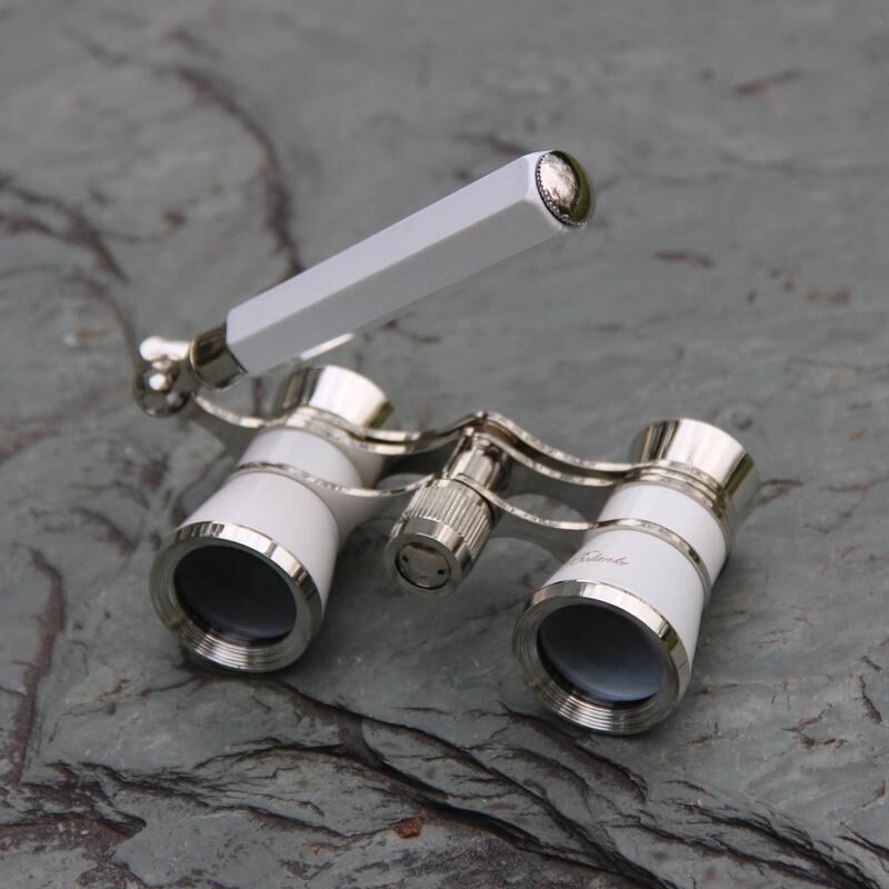 Μεταλλικό 3 X 25 κυρία με λαβή χρωμίου διπλού κυλίνδρου τηλεσκόπιο (λευκό μαργαριτάρι)