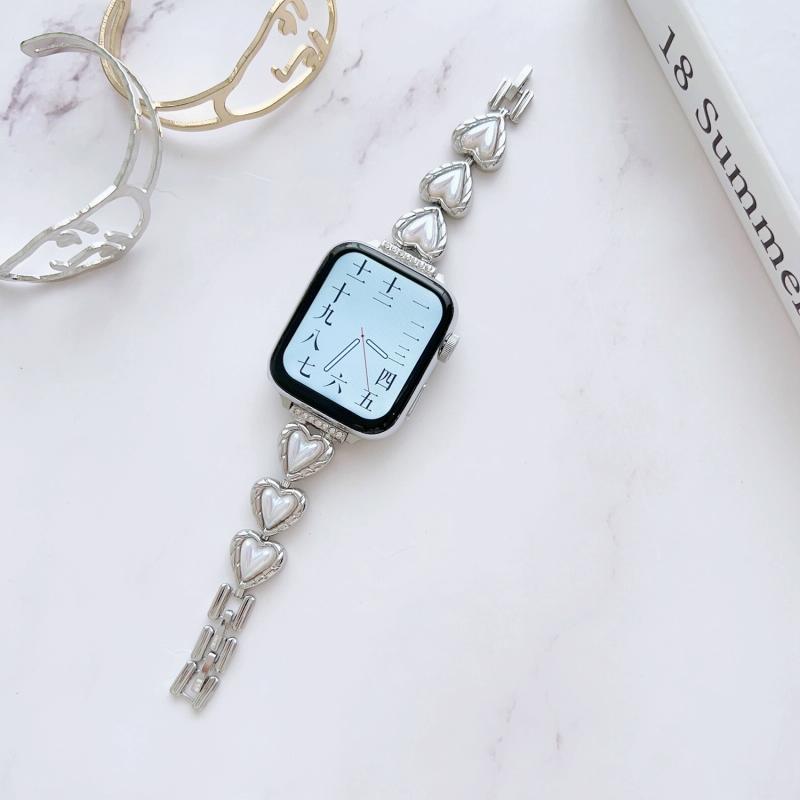 Μεταλλικό Μπρασελέ για Apple Watch Series 8&7 41mm / SE 2&6&SE&5&4 40mm / 3&2&1 38mm (Heart Silver)