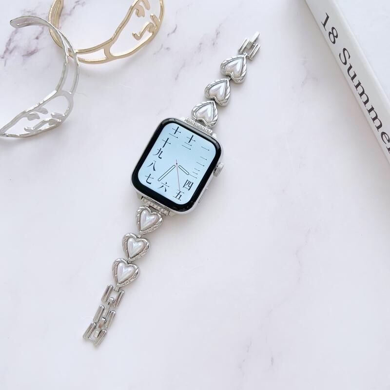 Metal Bracelet Watch Band For Apple Watch Series 8&7 45mm / SE 2&6&SE&5&4 44mm / 3&2&1 42mm(Heart Silver)