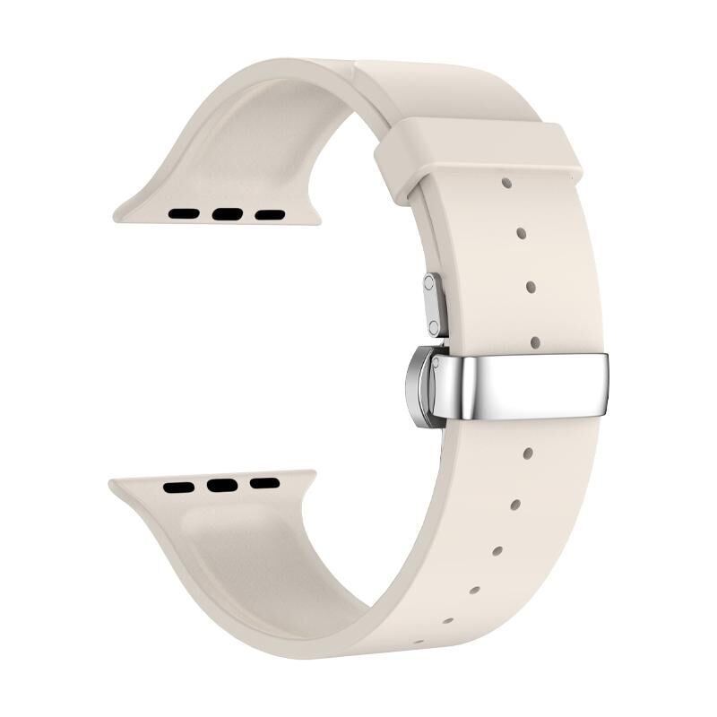 Metal Butterfly Buckle Silicone Watch Band For Apple Watch SE 2023 44mm(Starlight Color)