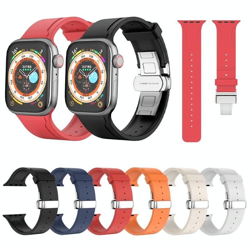 Λουράκι για Apple Watch SE 44mm από σιλικόνη με αγκράφα πεταλούδας από μέταλλο (Λευκό)