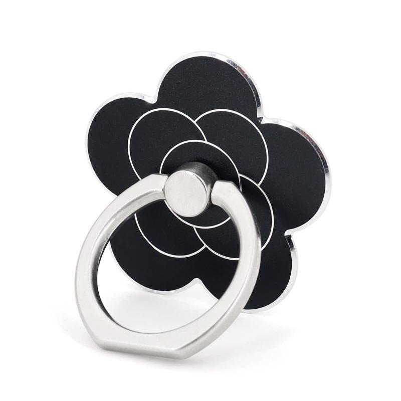 Μεταλλική Δακτυλίδι Κράτησης Κινητού Τηλεφώνου, Περιστρεφόμενη Βάση Κινητού για Επιφάνεια Εργασίας, Χρώμα: Μαύρο με Οξείδωση 5 Πετάλων Λουλουδιού