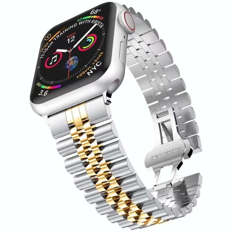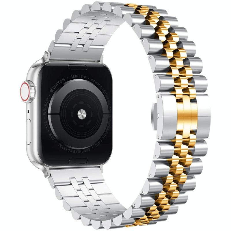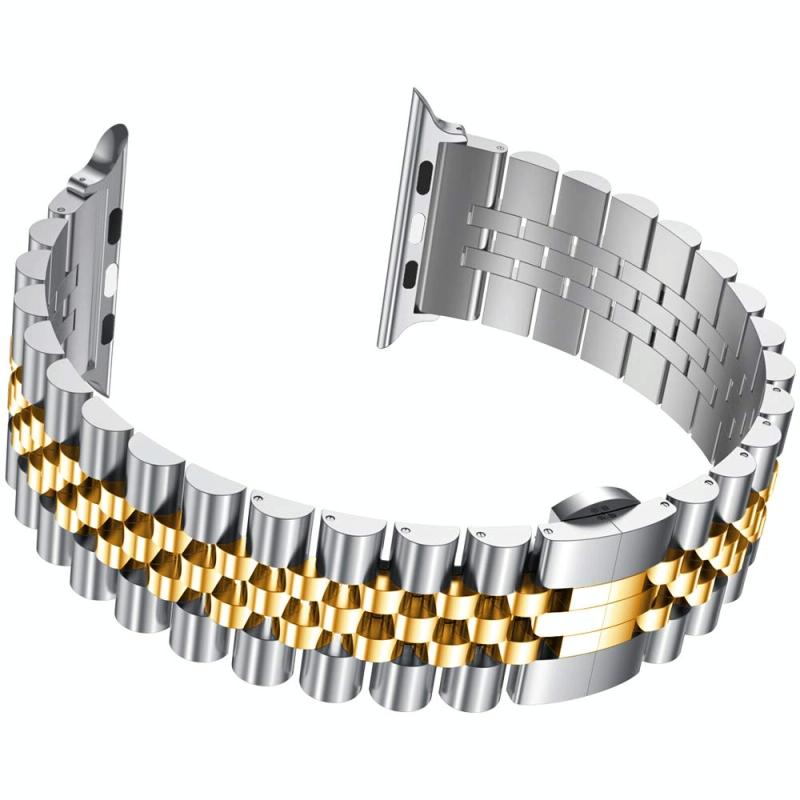 Metal Five Baht Replacement Steel Watch Band For Apple Watch Series 9&8&7 41mm / SE 3&SE 2&6&SE&5&4 40mm / 3&2&1 38mm(Between Gold)