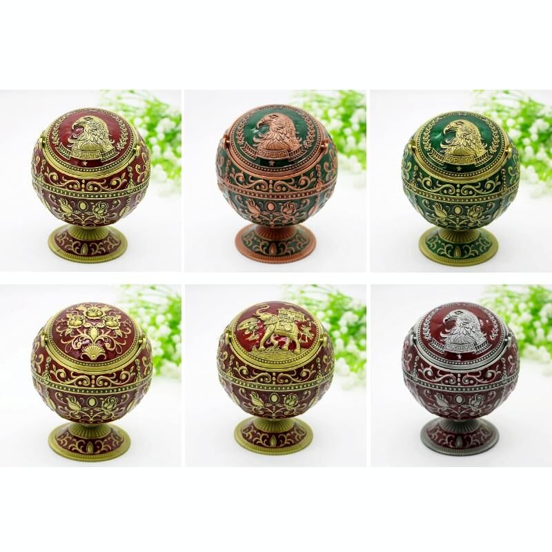 Metal Globe Ashtray With Lid Holiday Gift Tea Table Decoration(Wine Red Rose)