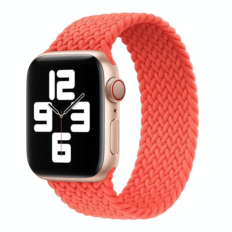 Metal Head Braided Nylon Solid Color Watch Band For Apple Watch Series 9&8&7 41mm / SE 3&SE 2&6&SE&5&4 40mm / 3&2&1 38mm, Size:S 135mm(Bright Orange)
