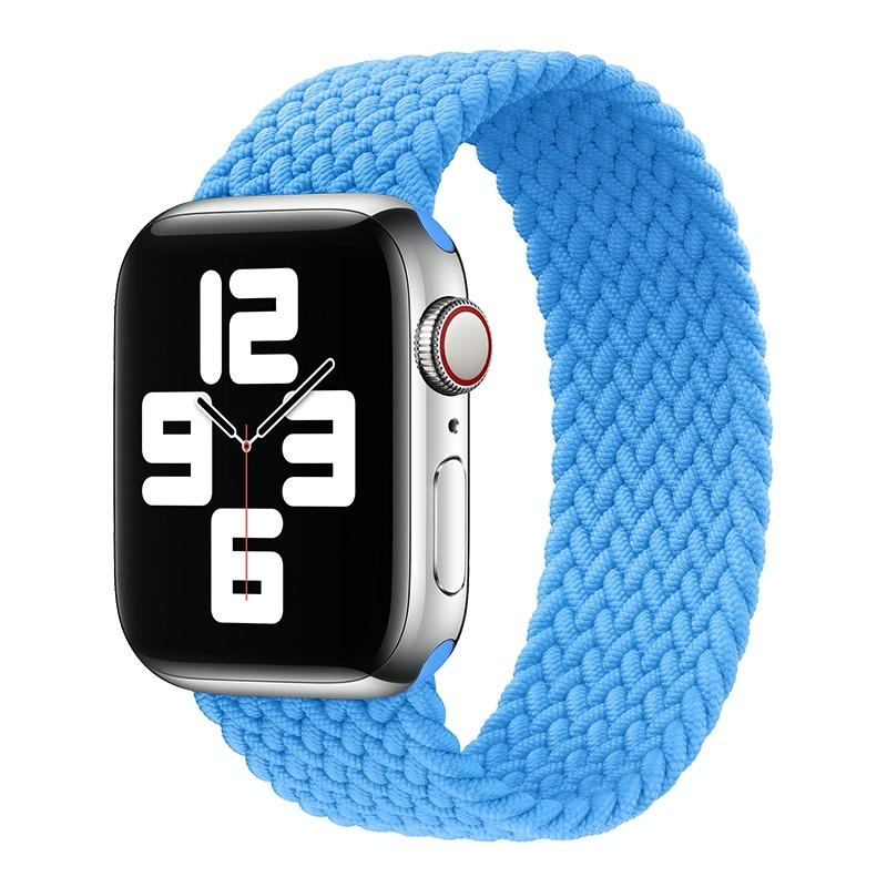 Metal Head Braided Nylon Solid Color Watch Band For Apple Watch Ultra 49mm&Watch Ultra 2 49mm / Series 9&8&7 45mm / SE 3&SE 2&6&SE&5&4 44mm / 3&2&1 42mm, Size:XS 135mm(Sky Blue)