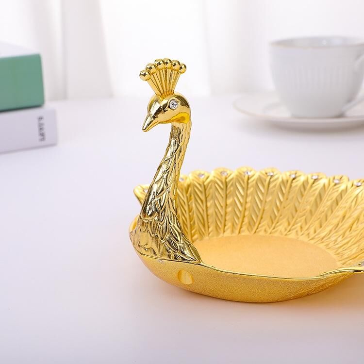 Metal Peacock Fruit Tray Home Living Room Candy And Snack Storage Tray(Gold)