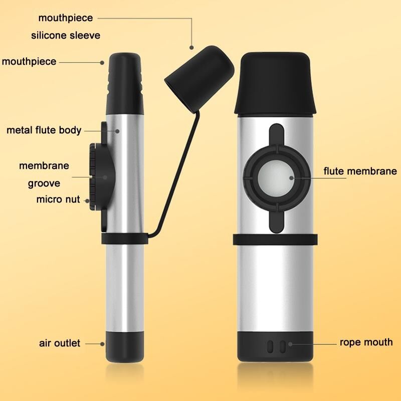 5. Το πολυτάχυτο κουμπί ρυθμίζει τη σφιξίμο και αλλάζει το εύρος δόνησης της μεμβράνης της φλογέρας, ώστε να μπορούν να ρυθμιστούν διαφορετικοί τόνοι ανάλογα με την αναπνοή του παίκτη.