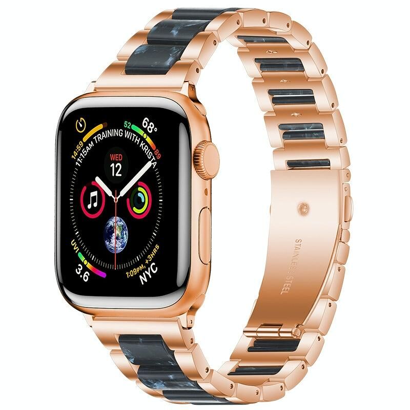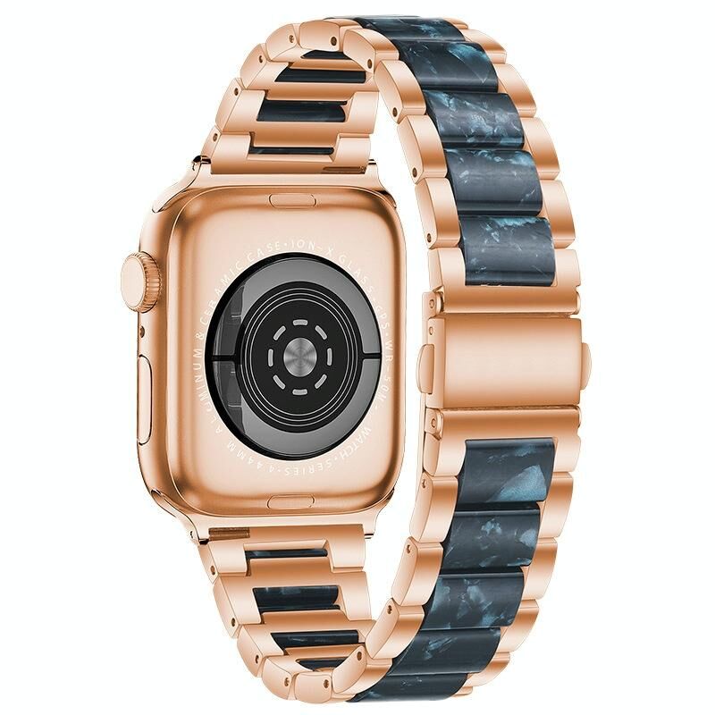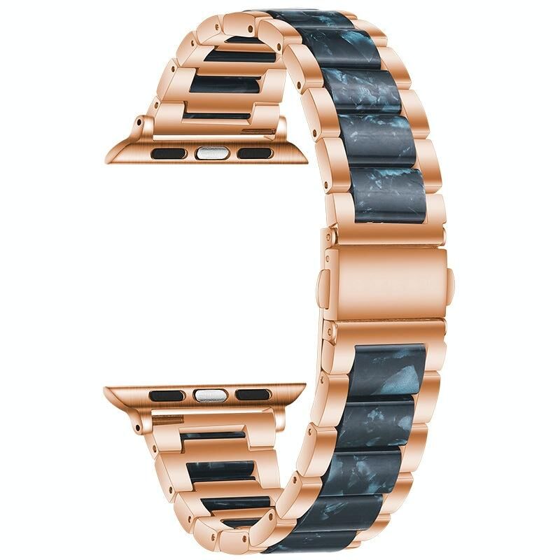 Λουράκι ρολογιού από μέταλλο + ρητίνη για Apple Watch Ultra 49mm & Watch Ultra 2 49mm / Series 9 & 8 & 7 45mm / SE 3 & SE 2 & 6 & SE & 5 & 4 44mm / 3 & 2 & 1 42mm (Ροζέ χρυσό μπλε)