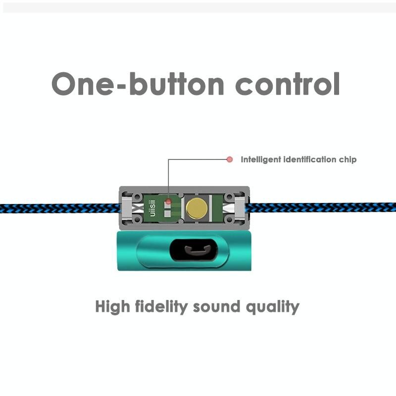 Ακουστικά ενσύρματα με μεταλλικό καλώδιο, υπερμπάσο ήχο, αθλητικά ακουστικά εντός του αυτιού με μικρόφωνο για Xiaomi Samsung Huawei (ΚΙΤΡΙΝΟ)
