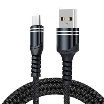 Καλώδιο δεδομένων και φόρτισης USB σε Micro USB, 2m, 2A, με διπλό λυγιστό σχήμα και πλεκτή υφή, για Samsung / Huawei / Xiaomi / Meizu / LG / HTC (Μαύρο)