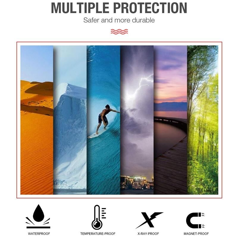 4. Τετραπλή προστασία: αδιάβροχη, αντιμαγνητική, ανθεκτική στο κρύο και στη θερμότητα, ανθεκτική στις ακτίνες Χ, προστατεύει την κάρτα μνήμης, απαλλαγμένη από εξωτερικές παρεμβολές.