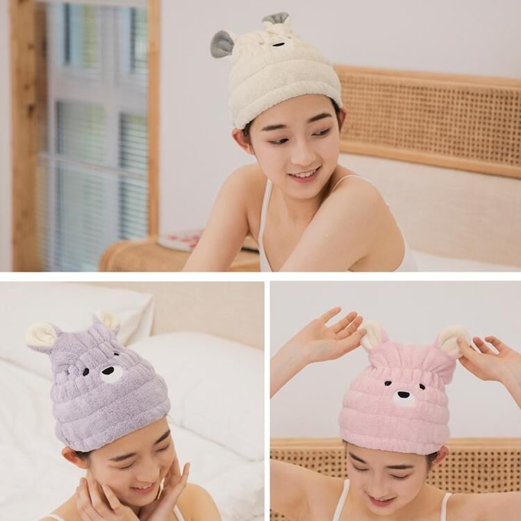 Καπέλο μαλλιών από μικροΐνες κοραλλένιας βελούδου με σχέδια κινούμενων σχεδίων, γρήγορου στεγνώματος (Μπλε)