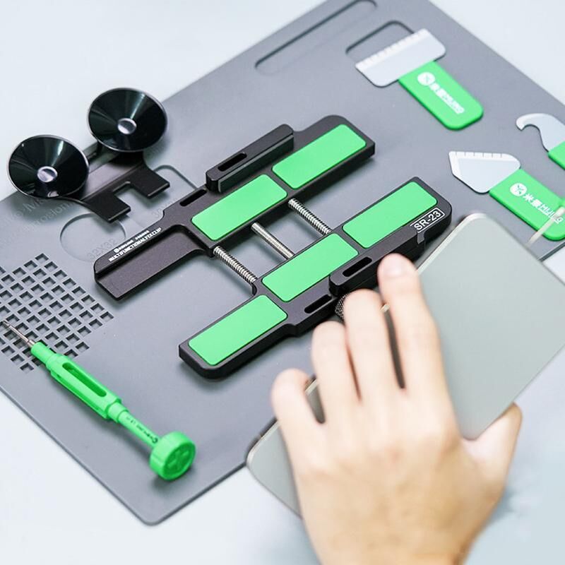 3. With removable suction cups, the side-mounted screen fixture turns into a cell phone fixing fixture for repairing cell phones.