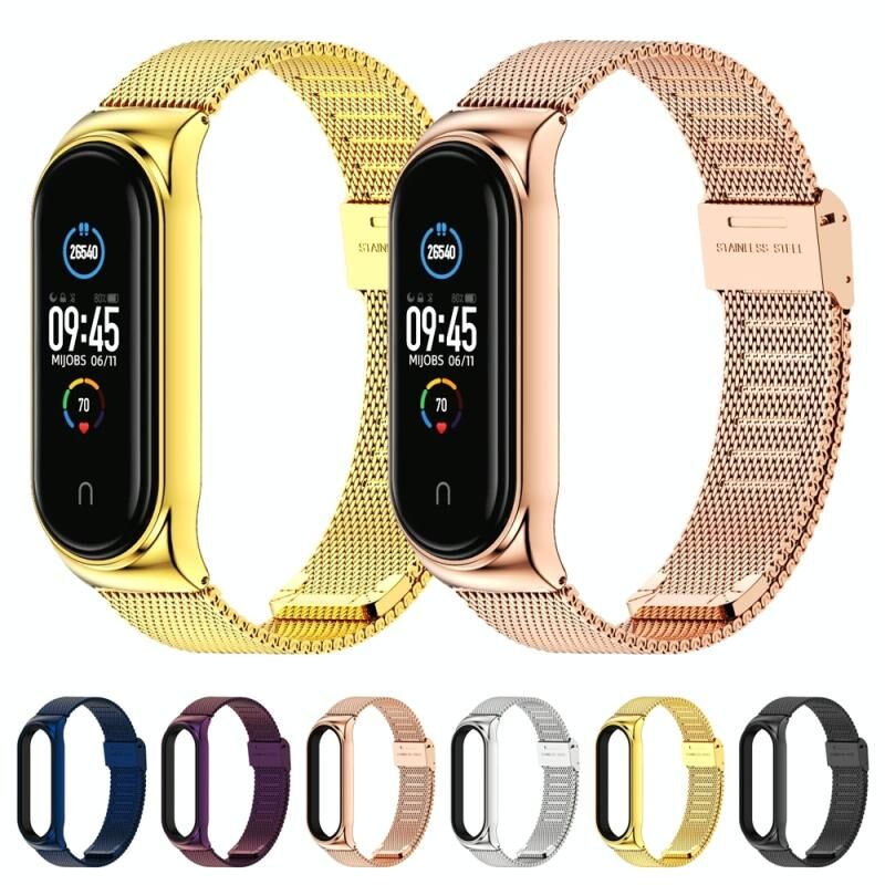 Mijobs Milan CS Screwless Buckle Metal Watch Band Case for Xiaomi Mi Band 3 & 4 & 5 & 6, Host not Included(Rose Gold) (MIJOBS)