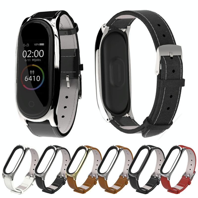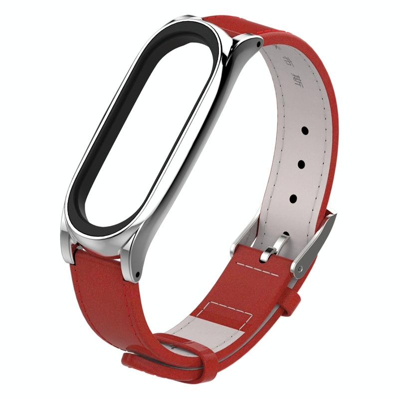 Mijobs Screwless Magnetic Case Top-grain Leather Watch Band for Xiaomi Mi Band 3 & 4 & 5 & 6, Host not Included