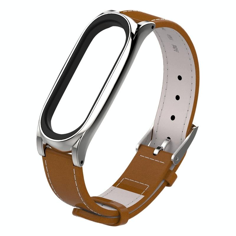 Mijobs Screwless Magnetic Case Top-grain Leather Watch Band for Xiaomi Mi Band 3 & 4 & 5 & 6, Host not Included