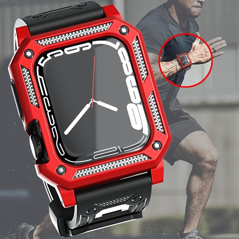 Στρατιωτικό λουράκι σιλικόνης για Apple Watch Series 8&7 45mm / SE 2&6&SE&5&4 44mm + Σετ θήκης ρολογιού (Κόκκινο)