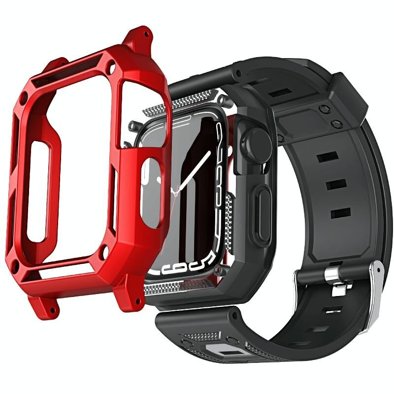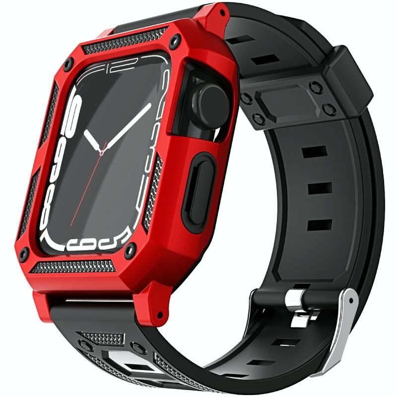 Στρατιωτικό λουράκι σιλικόνης για Apple Watch Series 8&7 45mm / SE 2&6&SE&5&4 44mm + Σετ θήκης ρολογιού (Κόκκινο)