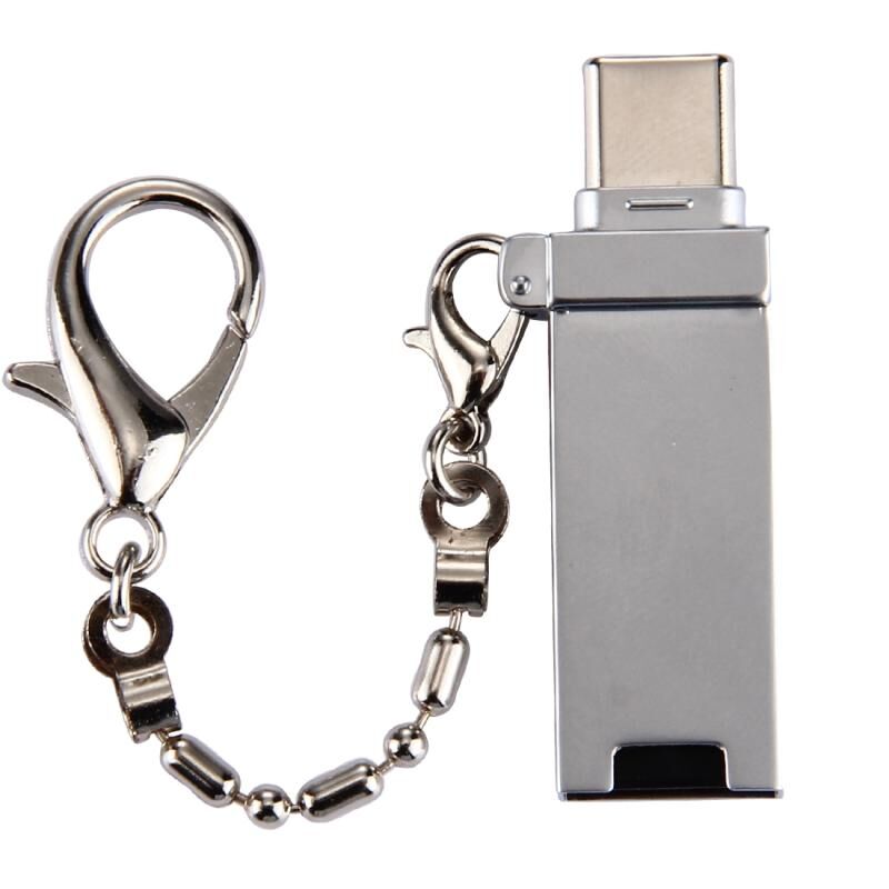 Μικρός αντάπτορας θύρας USB 2.0 θηλυκού σε USB-C / Type-C αρσενικού, από κράμα αλουμινίου, με αλυσίδα (Γκρι)