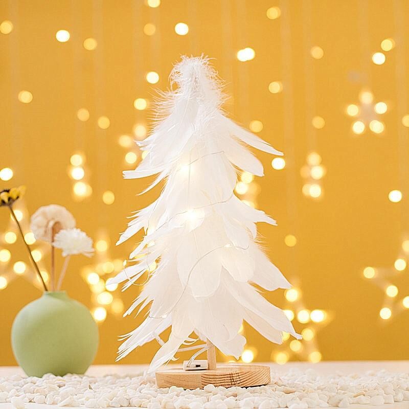 1. Υλικό: φτερό + ξύλινη βάση 2. Μέγεθος: περίπου 30x15cm, διάμετρος βάσης 10cm 3. Βάρος: περίπου 95g 4. Συσκευασία: συσκευασία σε χαρτόκουτο 5. Κατασκευή: χειροποίητο 6. Εφαρμογή: Χριστουγεννιάτικες διακοσμήσεις για το σπίτι, το ξενοδοχείο και άλλους χώρους 7. Τρόπος παροχής ρεύματος: κάθε δέντρο συνοδεύεται από ένα ζεστό φως 1 μέτρου (το προϊόν συνοδεύεται από δύο μπαταρίες κουμπιού CR2032)