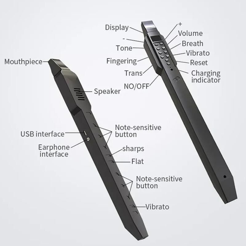 3. 10 built-in tones (triple clarinet, gourd flute, tenor sax, alto sax, soprano/triple sax, bamboo flute (recorder), flute, clarinet, trumpet, suona)