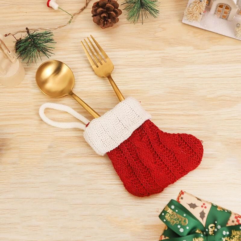 Μικρές Πλεκτές Κάλτσες Δώρου Χριστουγέννων Διακοσμητικά για τις Γιορτές (Κόκκινο)