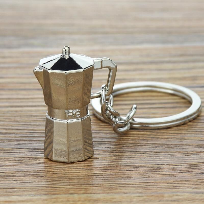 Μικρά μεταλλικά εργαλεία καφέ μπρελόκ, διακοσμητικό μενταγιόν, Στυλ: Moka Pot Μαύρο
