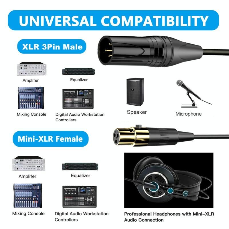 3. Widely used: amplifiers, audio interfaces, audio mixers, mini microphones, 4K cameras, and any interface devices from XLR male & female to mini XLR female.