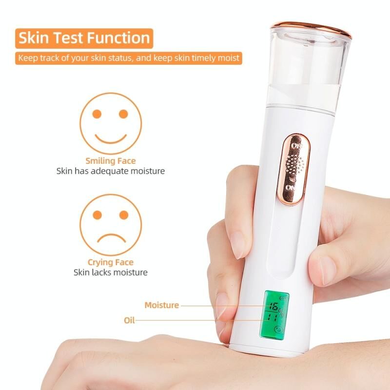 1. Double hydration effect: it atomizes water into nano particles and sprays 2 times from 2 nozzles to instantly penetrate into pores and moisturize your skin.